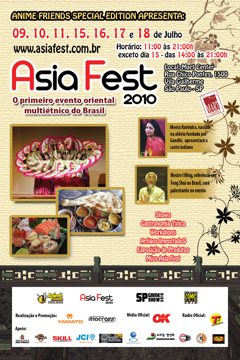Acontece neste mês de julho, junto ao famoso Anime Friends, o evento Asia Fest 2010 na cidade São Paulo, que possui como diferencial a abrangência do oriente de maneira diversificada, menos focada no estereótipo de oriente aqui abordada no Brasil, que é somente Japão e China.